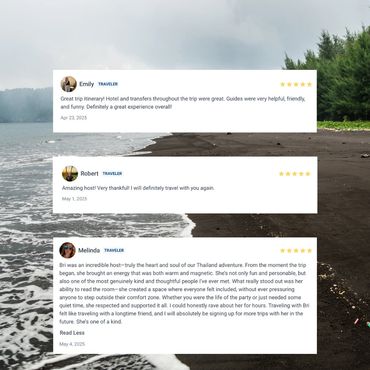 Since the first Thailand group trip sold out so fast and we had a waitlist, we decided to launch a second one and it was just as incredible as the first! Another INCREDIBLE 7-day trip around Chiang Mai and Mai, Thailand where were experienced local culture, cuisine, and adventures like Whitewater rafting, cycling to ruins, boat rides, night markets, temples, ethical elephant sanctuary, waterfalls, hiking, a cave, hot springs, and a local Thai massage all while making incredible memories and new lifelong friends! Seriously, everyone is still chatting in the group chat!